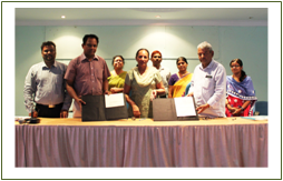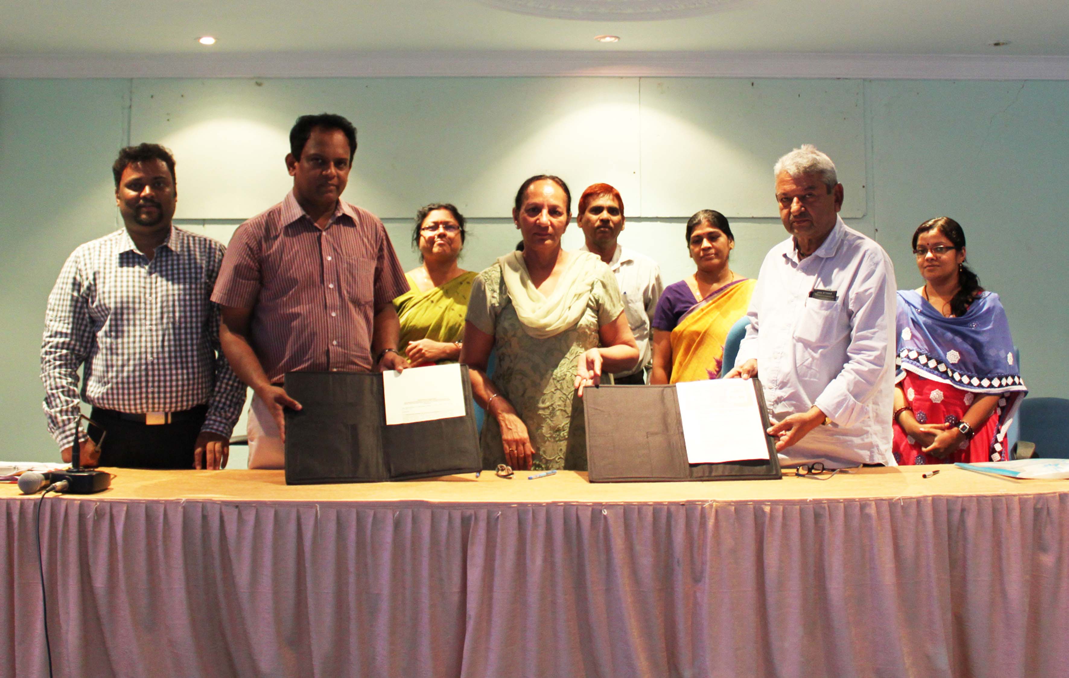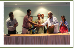 | The Memorandum of Agreement (MOA) for transferring the technology was signed by Dr. J. Charles Jeeva, Nodal Officer, Institute Technology Management Unit, ICAR-CIWA with Shri. Vijay K. Munjal, Managing Partner, M/s SaiShakti in the presence of Dr. Neelam Grewal, Director, ICAR-CIWA, and other members of ITMU. | |