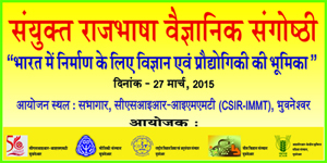 | दिनांक 27 मार्च, 2015 को भुवनेश्वर स्थित भा.कृ.अनु.प.-केन्द्रीय कृषिरत महिला संस्थान (ICAR-CIWA) ने सी.एस.आइ.आर-खनिज एवं प्रौद्योगिकी संस्थान (CSIR-IMMT), राष्ट्रीय विज्ञान शिक्षा एवं अनुसंधान संस्थान (NISER), भौतिकी संस्थान (IOP) एवं जीव विज्ञान संस्थान (ILS) के साथ मिलकर संयुक्तर रूप से राजभाषा हिन्दी) के माध्यम से भारत में निर्माण के लिए विज्ञान एवं प्रौद्योगिकी की भूमिका विषय पर एक दिवसीय वैज्ञानिक संगोष्ठीन सी.एस.आइ.आर-आइ.एम.एम.टी.(CSIR-IMMT),भुवनेश्वर में आयोजित किया । भुवनेश्वरर एवं इसके निकटवर्ती क्षेत्रों में स्थित विभिन्न उच्चत शिक्षा तथा अनुसंधान से जुड़े संस्था नों को एकीकृत रूप में राजभाषा के माध्यसम से उपर्युक्त विषय पर विस्तानर से चर्चा हेतु एक माध्यम तैयार करना इस संगोष्ठीो का मुख्यर उद्देश्ये रहा । |