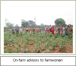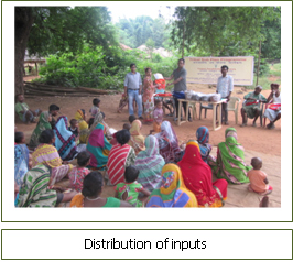 2. ICAR-CIWA Celebrated 'World Food Day 2015''World Food Day, 2015' was celebrated by ICAR-Central Institute for Women in Agriculture, Bhubaneswar at a remote tribal village viz., Tarajodi at Shamakhunta block in Mayurbhanj district on 16th October, 2015. The theme of the celebration was 'Social Protection and Agriculture', which aims to underline the role social protection plays in reducing chronic food insecurity and poverty by ensuring access to food. In this context, the farm families were sensitized that their role is crucial in ensuring food security. |