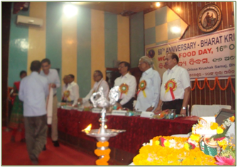 1. ICAR-CIWA participated in ‘World Food Day’ celebration organized by Orissa Krishak Samaj, BhubaneswarOn 16th October 2015, ICAR- Central Institute for Women in Agriculture, Bhubaneswar participated in the celebration of 60th anniversary of Bharat Krishak Samaj, New Delhi and observation of ‘World Food Day’ organized by Orissa Krishak Samaj, Bhubaneswar. The programme was inaugurated by Mr. Ajay Vir Jakhar, Chairman Bharat Krishak Samaj, New Delhi in the presence of Mr. Bishnupada Sethi, IAS, Commissioner-cum-Secretary, Fisheries and ARD Departments, Government of Odisha; Dr. Khageswar Pradhan, Former Vice-Chancellor OUAT, Bhubaneswar; Dr. S. K. Srivastava, Director, ICAR-CIWA, Bhubaneswar; Dr. S. K. Rout, Dean Extension, OUAT, Bhubaneswar; Dr. T. Moharana, Former HOD, Horticulture Department, OUAT, Bhubaneswar and Dr. P. C. Mohanty, Chairman, Orissa Krishak Samaj, Bhubaneswar. The importance of the institute and work done by the institute for farm women was highlighted by Dr. S. K. Srivastava. It was further insisted by him that the issues of the farm women are needed to be addressed for sustainable farm productivity and ensured food security of smallholders in India in order to increase prosperity. Farm women were encouraged to adopt Integrated Farming Systems and inculcate entrepreneurship skills, as trained, innovative, responsible and visionary women farmers are anticipated to lead our agriculture especially when India is on the verge of a Ever Green Revolution. The vote of thanks was delivered by Mr. B. K. Sahoo, Coordinator, Orissa Krishak Samaj, Bhubaneswar. The exhibition stall of ICAR-CIWA was inaugurated by Dr. Khageswar Pradhan in the presence of other dignitaries. Women friendly technologies, drudgery reducing tools, gender sensitive extension models and literature developed by the Institute were displayed to over 700 farmers and farm women in the exhibition through different models and posters. The queries raised by the farmers and farm women were efficiently answered by the ICAR-CIWA team consisting of Dr. Laxmipriya Sahoo, Dr. Shivaji Argade, Mrs. Tapaswini Sahoo and Er. Pragati Kishore Rout. The other institutes like NRRI, Cuttack and OUAT, Bhubaneswar had also participated in the exhibition. |