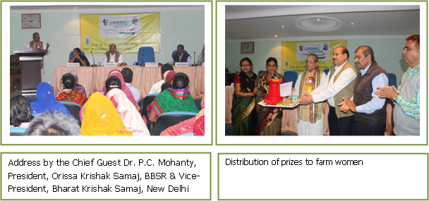 ICAR-CIWA, Bhubaneswar celebrated ‘Jai Kisan Jai Vigyan’ WeekICAR-CIWA, Bhubaneswar celebrated 'Jai Kisan Jai Vigyan' Week w.e.f 23rd December to 29th December 2015 on the birth anniversary of two former Prime Ministers Shri Atal Bihari Vajpayee and Late Shri Chaudhary Charan Singh. As the part of celebration, three outreach programmes were organized in three villages namely Kadua, Chamarpada and Bandhahata of Puri and Cuttack district of Odisha. The scientist-farmer interface, debate competition for farmwomen and quiz competition for children were organised. In the outreach programmes, the importance of having closer linkage between farmers and scientists for effective transfer of technologies were highlighted. Ten consolation prizes for farmwomen and 17 consolation prizes along with first three winner prizes for children were given at the venue of each outreach programme. The concluding function of ‘Jai Kisan Jai Vigyan Week’ organized at ICAR-CIWA, Bhubaneswar on 29th December, 2015. A scientist Farmer's interface was organized at the institute followed by concluding function. Dr. P. C. Mohanty, Vice-president, Bharat Krishak Samaj, New Delhi and President, Orissa Krishak Samaj, Bhubaneswar was the Chief Guest. The programme was attended by more than 80 farmwomen and other stakeholders of different villages from the Puri and Cuttack districts of Odisha. The Chief Guest lighted the lamp and inaugurated the function. The programme was started by the children’s dance on patriotic song. Dr. S. K. Srivastava, Director, ICAR-CIWA welcomed all and briefed the importance of celebrating ‘Jai Kisan Jai Vigyan Week’ and gave elaborative deliberation on role of ICAR-CIWA in gender mainstreaming and women empowerment. Dr. Anil Kumar (Principal Scientist) and Dr. Naresh Babu (Principal Scientist) were also emphasized on linkage between farmers and scientists for effective transfer of technologies and briefed about the activities organised during celebration. The Chief Guest Dr. P. C. Mohanty stressed upon the role of farmers to make India self reliant in food production. He also emphasized that the innovations in science and technology should reach to the farmers for increasing productivity and income. The first three winners of farmwomen’s debate competition from each outreach programme were awarded by the Chief Guest on the occasion. Vote of thanks was proposed by Dr. Jyoti Nayak (Senior Scientist). All the Scientific, Technical and Administrative staff of ICAR-CIWA co-operated for the successful conduct of ‘Jai Kisan Jai Vigyan' Week. |