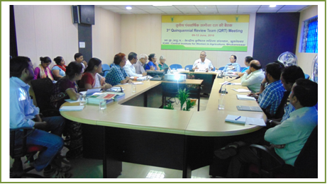 Quinquennial Review Team Meeting held on 9-12 June 2016The 3rd Quinquennial Review Team (QRT) meeting of the Institute was held on 9-12 June 2016 at ICAR-CIWA, Bhubaneswar. The QRT meeting was headed by Dr. P Das, Chairman QRT and Ex-DDG (Ag. Ext.) and attended by members: Dr. Mehtab S. Bamji, NIN, Hyderabad, Dr. Vandana Dwivedi, Additional Commissioner, Ministry of Agriculture and Farmers' Welfare, Dr. Vinita Sharma, Ex-Head, SEED Division, DST, New Delhi and Dr. V P Chahal, Member Secretary and Assistant Director General (Ag. Ext.), ICAR, New Delhi. The Director ICAR -CIWA Dr. Jatinder Kishtwaria and the Scientists of the Institute also attended the meeting. The Committee interacted with the Scientists and staff of ICAR-CIWA and had detailed discussions on the work done by the Institute under the period of review. They also reviewed the work of the AICRP (Home Science) Centres and deliberated upon the interactions the Committee had with the Scientists of the AICRP Centres while the Committee visited those centres. Thereafter, the Committee discussed the draft of the QRT report and finalized the recommendations for the period under review. |