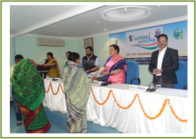 ICAR-CIWA Celebrates 'Jai Kisan Jai Vigyan' DaysICAR-CIWA, Bhubaneswar celebrating 'Jai Kisan Jai Vigyan' days from 23rd to 25th December, 2016 to commemorate birth anniversary of two former Prime Ministers Shri Atal Bihari Vajpayee and Late Shri Chaudhary Charan Singh. As a part of the celebration, one outreach programme for 50 farm women was organized on 23rd December, 2016 at ICAR-CIWA campus. The programme was started with the welcome address by Dr. Sabita Mishra, Principal Scientist. Dr. Jatinder Kishtwaria, Director, ICAR-CIWA, Bhubaneswar inaugurated the programme. On her inaugural remarks, she briefed the importance of celebrating ‘Jai Kisan Jai Vigyan' days and also highlighted the role of ICAR-CIWA in addressing gender issues in agriculture and allied fields. Dr. H. K. Dash, Principal Scientist, deliberated on gender mainstreaming and women empowerment and emphasized the importance of linkage between farmers and scientists for effective transfer of technologies. The programme was ended with vote of thanks by Dr. A. K. Panda, Principal Scientist of the institute. A training cum demonstration on Oyster Mushroom Cultivation was imparted to the farm women during the occasion by the outreach Team led by Dr. Sabita Mishra. |