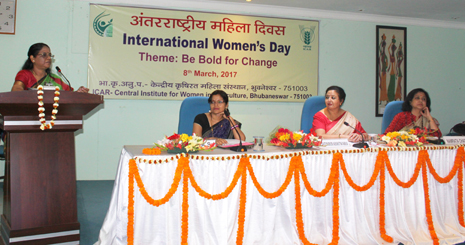 ICAR-CIWA CELEBRATES INTERNATIONAL WOMEN'S DAY ON 8th MARCH, 2017ICAR- Central Institute for Women in Agriculture (ICAR-CIWA), Bhubaneswar celebrated International Women's Day on 8th March, 2017. On this occasion, Ms. Namrata Chadha, renowned social activist and former member State Commission for Women, Odisha was the Chief Guest. Smt. Sujata Barik, IMC member, Smt. Pratima Mishra, IMC member, Dr. Meena Senapati, and Mrs. Supreety Mishra, both Women Entrepreneurs were the Guests of Honour. The programme was attended by farm women from adopted villages of ICAR-CIWA and Staff of ICAR- CIWA and media personnel. The program began with the invocation of ICAR Song. Dr. Tanuja Somarajan, Nodal Officer, delivered welcome address and briefed about the importance of the occasion. Smt. Sujata Barik shared her views on the occasion about the requirement of positive change in the mindset of farming community for betterment of farm women. Smt. Pratima Mishra encouraged the institute and farm women to keep up the good work. Mrs. Supreety Mishra stressed to follow ones dream in spite of the hindrances of life and thus proved to be a source of inspiration for all the farm women.