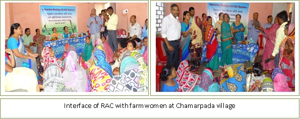 At the outset, Dr. Jatinder Kishtwaria welcomed the Chairperson, Members of RAC and other participants in the meeting. In her welcome address, she presented a highlight on research achievements and future perspectives of the Institute. It was followed by the presentation of Action Taken Report (ATR) on the Recommendations of 17th RAC by Member-Secretary, and approved by the RAC. Dr. Vinita Sharma, Chairperson of RAC, in her opening remarks, emphasized the fact that, being a National Level Institute, ICAR-CIWA should take up projects with national perspective, in collaboration with other Institutions. In total, 15 future projects of ICAR-CIWA and 14 projects of AICRP on Home Science to be taken up during the medium term plan period of 2017-20 were presented. The RAC critically reviewed those proposals and offered valuable inputs for reshaping them for better outcomes. The RAC Chairperson and Members also visited an adopted village of the Institute viz., Chamarpada in Cuttack district on 28 July, 2017, and had an interface with the farmwomen. The research and extension activities carried out under the Institute's research projects and through Mera Gaon Mera Gaurav initiative were also reviewed by the RAC. As part of the Interface, drudgery reducing farm tools were also distributed to the participants.
