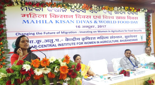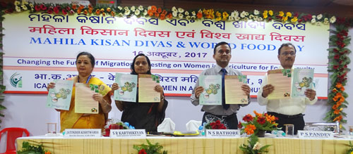 Celebration of "Mahila Kisan Divas" and "World Food Day" at ICAR-CIWAMahila Kisan Divas and World Food Day was celebrated at ICAR-CIWA on 16th October 2017. Honourable DDG (Education) ICAR, Dr. Narendra Singh Rathore attended the programme as Chief Guest while Dr. P. S. Pandey, ADG (EP&HS) ICAR, Smt. Sujata R. Karthikeyan, IAS, Commissioner cum Director, Odisha Watershed Development Mission and Mission Shakti, Dr. S. N. Pasupalak, VC, OUAT and Dr. D. P. Ray, Former VC, OUAT were the Guests of Honour. The farm women of Odisha heartily welcomed the guests in a traditional style followed by plantation of saplings by the delegates. In this programme, Dr. Jatinder Kishtwaria, Director of the institute warmly welcomed the guests and other dignitaries. She justified the importance of this auspicious Day, and the role of ICAR-CIWA in addressing gender issues in agriculture and women empowerment. Smt. Karthikeyan elaborated the dual role of farmwomen, existing overlooked drudgery faced by them and their significant potential in improving agricultural production. On the eve of Mahila Kisan Divas, quiz and debate competitions were organized in four villages under Mera Gaon Mera Gaurav programme and women winners were selected. The Chief Guest honoured the farmwomen with certificates and awards followed by release of publications. During his presidential address, he highlighted the significant role and contribution of women in farm & nonfarm activities and raised their issues in agriculture. About 250 progressive farm women of Odisha, Directors, Heads, Scientists of ICAR & SAU and officials from different development organisations had participated in the event. For dissemination of information on government schemes and programmes, a knowledge facilitation workshop was also organized where NABARD, Odisha Livelihood Mission, Department of Horticulture and IMAGE had participated as knowledge partners. In addition, several exhibition stalls were arranged by various agencies to display improved gender friendly farm technologies. The event was successfully organized with active involvement of all the scientists, administrative and technical staff members of ICAR-CIWA.