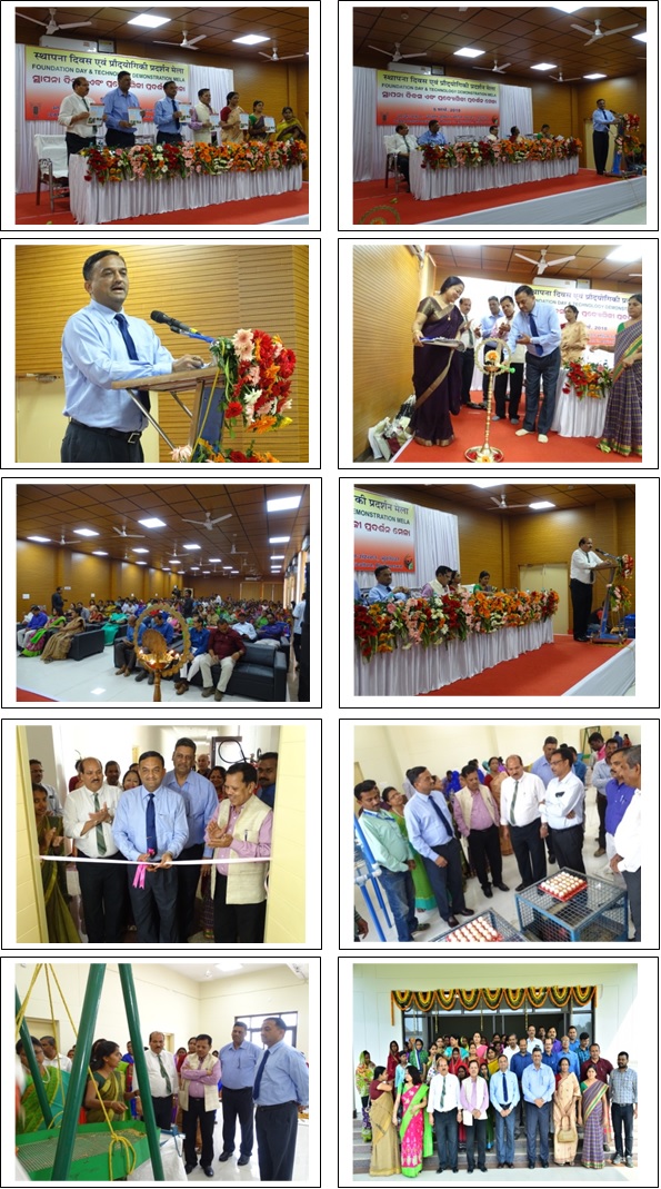 Celebration of Foundation Day and Technology Demonstration Mela on 5th March, 2018ICAR-CIWA celebrated its Foundation Day on March 5, 2018. During this occasion, a Technology Demonstration Mela and Scientist-Farmer Interface was organized in which 150 farmwomen from Koraput, Cuttack and Puri districts of Odisha had participated. The Hon'ble DDG (Education), ICAR, New Delhi, Dr. Narendra Singh Rathore had graced the occasion as the Chief Guest. The Vice Chancellor OUAT, Bhubaneswar, Prof. (Dr.) S. Pasupalak was the Guest of Honour while Director ICAR-IIWM, Bhubaneswar, Dr. S. K. Ambast and the representative of Director, ICAR-Central Institute for Freshwater Aquaculture, Bhubaneswar, Dr. B. R. Pillai were the Special Guests of the occasion. Besides, there were many other Dignitaries from ICAR, SAUs and NGOs who attended this auspicious function. At the outset of this event, the Director of the Institute, Dr. S.K. Srivastava welcomed all the Delegates and highlighted the significant achievements of the Institute. Dr. Narendra Singh Rathore, DDG (Education), ICAR during his Presidential address, signified the important role of CIWA in achieving women empowerment in agriculture and underlined the contribution of farmwomen in sustainability of Indian agriculture. In the Technology Demonstration Mela, the farm women were demonstrated with various women friendly technologies developed and identified by ICAR-CIWA. In addition, there were also 10 exhibition stalls exhibiting the advanced agricultural technologies. During Farmer-Scientist Interface, the queries of farm women were answered by the Expert team of CIWA. Twenty progressive Farm Women in fields of Ginger cultivation, Rice cultivation, Nutrition garden, Poultry rearing, Mushroom cultivation, Groundnut cultivation and Dairy farming from different villages (Raipur, Khandagarh, Dihasahi, Kadua, Talapatna, Routsahi, Beherasahi, Chanaguda, Patangi, Similiguda, Nuagada, Balarampur, Balisahi, Bandhahata, Katakiasahi, Chanharpada, Denuabasta, Denua, Alipingala, Seulasahi) were awarded with certificates and award kits. Awardees of Vigilance Awareness Week, & ICAR-CIWA Personnel were recognized with certificates. The formal vote of thanks was extended by Dr. Sabita Mishra, Nodal Officer Foundation Day.
