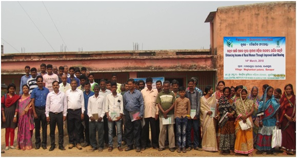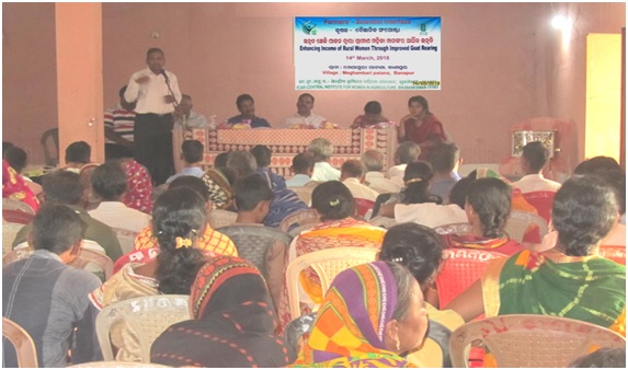 Farmers' Scientist Interface on Improved Goat farming organized by ICAR-CIWA on 14th March 2018A Farmers' Scientist Interface was organized on 14th March 2018 at village Meghambari Patana, Banapur block, Khorda district under the project "Enhancing Income of Rural Women through Improved Goat Rearing". Dr. B. Sahoo, Pr. Scientist and PI of the project welcomed the participants and briefed about the project activities in Khorda district and highlighted the role of women in income generation through improved goat farming for livelihood support of the farm women. Dr. Anil Kumar, Pr. Scientist, advised the farm women to undertake scientific breeding, feeding and management for higher return. Dr Srikanta Khatua, Block Veterinary Officer gave a detailed talk on the prevention and treatment of various diseases of goats and appreciated the activities undertaken by the scientists of ICAR-CIWA for upliftment of farm women engaged in goat rearing. Dr Jyoti Nayak, Pr. Scientist, ICAR-CIWA highlighted the importance of hygienic and sanitary measures for farm women engaged in goat rearing. Dr Bhagabati Prasad Das, Additional veterinary surgeon urged the farmers to take the benefits through various schemes implemented by government for improved goat rearing and dairy farming. Dr Rosalin Khatua, Mobile Vety. Officer, Banapur encouraged farm women to be self reliant and earn higher income through improved scientific animal husbandry practices. Shri D. N. Sarangi along with officials from KVK, ATMA and A.H. Department, Banapur participated in the interface and updated the technological information on improved goat farming. About 101 farmers especially farm women from the adopted cluster of villages of Banapur block (Gamei, Pandiripada, Gadadharpur, Karadapally, Dasarathipur, Halanda, Saranai, Saluni, Patrapur, Bhimpur etc.) participated in the interface and shared their views in goat farming. The farm women were advised by the experts to adopt latest technologies for making the goat farming a successful enterprise. The interface ended with vote of thanks by Dr. Jyoti Nayak, Pr. Scientist, ICAR-CIWA.