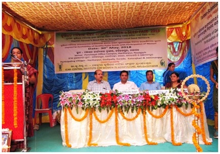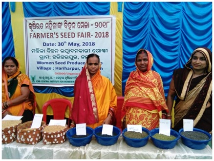 ICAR-CIWA Organized Farmer’s Seed Fair to Strengthen rural Seed NetworkAs farmer seed network at village level plays an important role in selection of crops and cropping system, the organization of seed fair got into prominence for sustaining agricultural productivity and conservation of biodiversity. Women play a major role in rural seed network which provided impetus to ICAR- Central Institute for Women in Agriculture to move forward with the above concept. Farmer’s SEED FAIR had been organized by ICAR-Central Institute for Women in Agriculture at Hariharpur village of Nayagarh District on 30 May, 2018. The programme was organized under the project “Improving availability of quality pulse seeds with participation of women” with the theme "Farmer’s Seed Fair to Strengthen Local Seed Network”. The seed fair was intended to create awareness in the locality and highlight the role of farmwomen in preserving the traditional cultivars through self produced seed. The fair also made available an environment for convergence of views of different government and non government organizations on development of a local seed network, created a platform for exchange of knowledge on schemes and programmes and increased the visibility on women’s contribution towards attaining seed sovereignty. On this occasion a Farmer- Scientist – Other stakeholder’s interface was conducted. It emerged that, as substituting the local pulse land races germplasm is very difficult, strengthening the seed network on local cultivars in most pulses would prove beneficial in the long run.