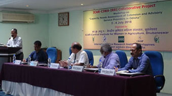 ICAR-CIWA Assessed Capacity Needs of Extension and Advisory Service Providers in OdishaICAR-CIWA Assessed Capacity Needs of Extension and Advisory Service Providers in Odisha by conducting two days workshop under the ICAR-CIWA-IRRI collaborative project “Increasing Productivity of Rice-based Cropping Systems and Farmers Income in Odisha” at ICAR-CIWA, Bhubaneswar from 3-4 July 2018. The workshop was jointly organized by ICAR-CIWA, IRRI and CRISP. The objective of the workshop was to assess existing capacity gaps among Extension and Advisory Services (EAS) providers at different levels and identify mechanisms to develop new capacities among EAS providers. Thirty four senior level officials from State Govt. of Odisha, ICAR, Private organizations like Reliance Foundation, LWSI, Pragati, Pradhan, etc. participated in the workshop. Dr. S. K. Srivastava, Director, ICAR-CIWA, Bhubaneswar was the chief guest during the inaugural session of the workshop. Dr. Srivastava in his inaugural remark emphasized to identify core competencies for EAS existing capacity gaps and formulation of a capacity development plan for EAS providers in Odisha. Dr. Mukund Variar, State Coordinator, IRRI –Odisha Project, briefly introduced about the Project activities and enlighted on additional challenges of ensuring quality, providing technical backstopping, and ensuring collaboration and synergy among diverse EAS providers. Dr. Rasheed Sulaiman V. and his team from Center for Research on Innovation and Science Policy (CRISP), Hyderabad conducted the two days workshop for the participants. The Programme was coordinated by Dr. A. K. Panda, Pr. Sci. & PI and Dr. Jyoti Nayak, Pr. Sci and Co-PI of ICAR-CIWA-IRRI collaborative project.