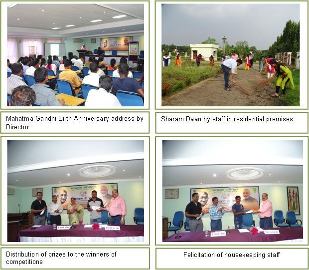 The 150th Birth Anniversary of Mahatma Gandhi and Valedictory Programme of ''Swachhta Hi Sewa'' Pakhwada was celebrated at ICAR-Central Institute for Women in Agriculture (ICAR-CIWA), Bhubaneswar on 2nd October, 2018. The celebration started with unveiling of logo of 150th Birth Anniversary of Mahatma Gandhi, which was followed by the inaugural address by Dr. S. K. Srivastava, Director, ICAR-CIWA. The consolidated report on the celebration of Swachhta Hi Sewa pakhwada was presented by Dr. J. Charles Jeeva, Nodal Officer, which was followed by distribution of prizes to the winners of various competitions, and felicitation of housekeeping staff. A Sharam Dann by all the staff members, including contractual staff was also carried out in the residential premises of ICAR-CIWA.