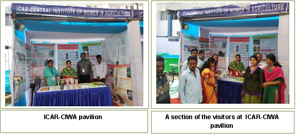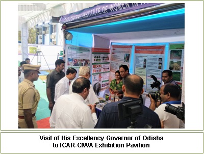 The ICAR-Central Institute for Women in Agriculture (ICAR-CIWA) participated in the Exhibition organized as part of the National Workshop on 'Aquaculture as Livelihood Option for Tribal Farmers of India' at ICAR-Central Institute of Freshwater Aquaculture, Bhubaneswar during 18-19 February, 2019. His Excellency Governor of Odisha, Professor Ganeshi Lal visited the CIWA pavilion and showed keen interest in knowing about the technologies for farmwomen, and also about the value added fish products, and advised to strengthen its market linkage. |