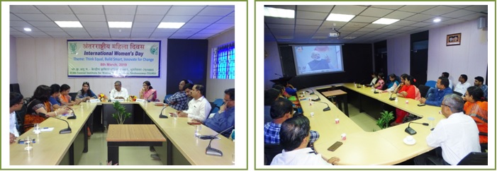 ICAR- Central Institute for Women in Agriculture (ICAR-CIWA), Bhubaneswar celebrated International Women's Day on 8th March, 2019. Ms. Sneha Mishra, Secretary, AAINA was the Guest of Honour of the day. Live telecast of the address of the Honourable Prime Minister Shri Narendra Modi from Varanasi on the occasion of International Women’s Day was organised for the benefit of the staff of ICAR-CIWA. Dr. Tanuja S, Nodal Officer, delivered welcome address and briefed about the importance of the occasion. On this Occasion a lecture on Genesis of International women's day was delivered by Er. Chaitrali S. Mhatre and a lecture on Rules, laws and rights for Women in India was delivered by Dr. Tanuja S. Ms. Sneha Mishra, Guest of Honour, in her address congratulated the institute for celebrating International Women's day and wished for the bright future of the institute. She stressed on the importance of the rights of the women and also appreciated the work done by the institute for the farm women. She explained the underlying meaning of the theme "Balance for Better" emphasising that if a positive change in the condition of women has to happen, and then there should be balance between both the genders in regards to responsibilities and opportunities of the life. She elaborated on the activities of AAINA, a voluntary organization which was established with the vision of working with the persons with disabilities, children and women who are vulnerable sections of the society. Adopting the inclusive approach, today the organisation has a deep rooted understanding and experience in Community Based Rehabilitation, with special focus on women empowerment, child rights, and promoting and strengthening People’s Organisations. She stressed upon the future collaboration between both organizations for achieving a common goal of empowering the women. Dr. Anil Kumar, Director I/C, ICAR-CIWA and Chief Guest in his address insisted the need for change in the attitude of the women emphasising they should have a go getter attitude and fight for their rights and for equality. He also stressed of the line of Simone de Beauvoir "One is not born but becomes a woman" The successful organization of the International Women's Day celebration was done by the following committee, Dr. Tanuja S, Nodal Officer; Er. Chaitrali Mhatre Co-nodal Officer, Er. Subrat Kumar Das, Member. The successful organization of the International Women's Day celebration was done by the following committee, Dr. Tanuja S, Nodal Officer; Er. Chaitrali Mhatre Co-nodal Officer, Er. Subrat Kumar Das, Member. |