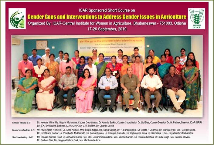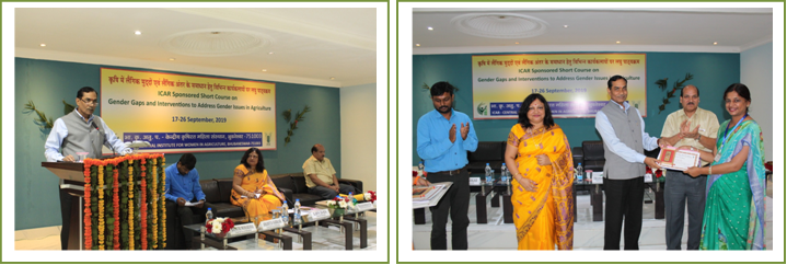 Bhubaneswar based ICAR- Central Institute for Women in Agriculture, had organized a ten days ICAR sponsored Short Course on “Gender Gaps and Interventions to Address Gender Issues in Agriculture” from 17th to 26th September, 2019. It was aimed at reducing gender gaps and identification and addressing of various technical interventions for women farmers. The programme was attended by a total of 25 participants which included Senior Teaching Faculties and Scientists from ICAR Institutes from 11 different states of the country. During the programme discussions on various technological and methodological courses have been taken up in agriculture and allied sectors in addition to field visits and in-house project formulation. All the lectures and presentations emphasized on strengthening gender perspective in various research and extension. The programme was inaugurated on 17.09.2019 by Dr. Himanshu Pathak, Director, ICAR-NRRI, Cuttack as Chief Guest. In his address the participants, he pointed out on the need of women empowerment especially in the field of agriculture as major challenges such as male migration and climate change remains prominent in near future.