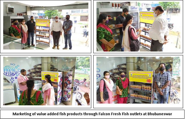 Market linkage was established for a rural women SHG by linking the value added products under the brand name ''Fishlikes'' with Retail Fish Supply Chain (Falcon Fresh Retail outlets) in Bhubaneswar on 20 August, 2020. Dr. S. K. Srivastava, Director, ICAR-CIWA launched the first marketing at the outlets.