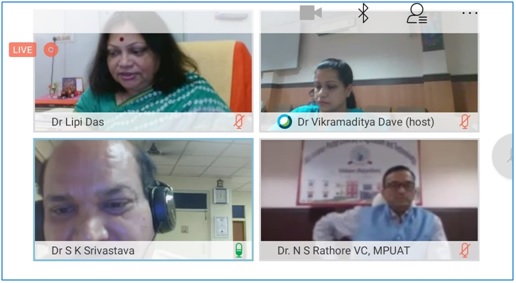 A National Webinar on ‘Women FPOs: An Effective Approach for Boosting Entrepreneurship, Empowerment and Self –reliance (Atmanirbhar)’ was jointly organized by ICAR-Central Institute for Women in Agriculture, Bhubaneswar and AICRP on Home Science Centre MPUAT, Udaipur on 10 September, 2020. It was inaugurated by the Chief Guest Dr. Narendra Singh Rathore, Hon’ble Vice-Chancellor, MPUAT, Udaipur. In his key note address on "Options for increasing entrepreneurship, empowerment and self-reliance" among the farm women he emphasized on Farmer Producer Association and its role on entrepreneurship, empowerment, self-reliance and value addition. Further, he accentuated that education, knowledge and skill-based capacity development are essential for empowerment of farm to start their own ventures in order to improve their economical and socio-economic status.