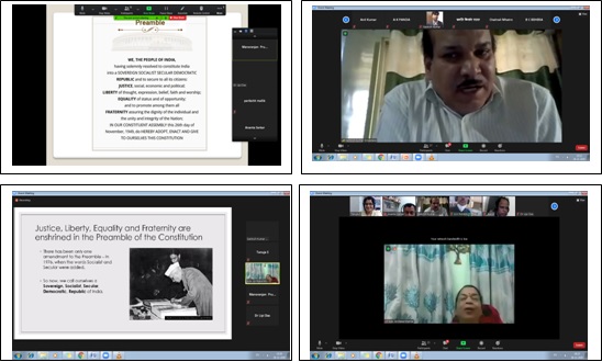 ICAR-Central Institute for Women in Agriculture celebrated the Constitution Day on 26th November 2020. As a part of the programme, the staff of the Institute joined the reading of Preamble to Indian Constitution at 11.00 a.m through the india.gov.in portal. Dr S.K.Srivastava, Director of the Institute led reading of the Preamble at the institute which was attended by staff through virtual mode. An invited online lecture on “KYC- Know Your Constitution: Rights and Duties” was organized at 3.00 p.m for the benefit of the staff of ICAR-CIWA. The meeting started with ICAR song followed by welcome address by Dr Tanuja S, Scientist and Nodal Officer (Constitution Day and Citizens’ Duties Campaign). Dr S. K. Srivastava, Director gave his introductory remarks on the importance of upholding Indian Constitution. The lecture was delivered by Adv. Archana Mishra, State Defense Counsel, Bhubaneswar. The speaker touched upon the history of the Constitution of India. She explained the fundamental rights of an Indian citizen citing examples from everyday life. She emphasized on the importance of fundamental duties of each Indian citizen for the development of the country and for upholding its integrity. She explained about the legal aid system which is in place for helping the poor and needy to get equal justice. The meeting ended with Vote of Thanks by Dr Tanuja S followed by National Anthem. Dr Ananta Sarkar hosted the meeting.