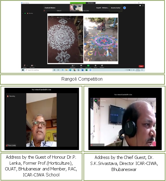 During this occasion Rangoli competitions was organized among the women while celebrating the worship of Goddess Laxmi by offering first harvested rice from their own field. At the end of the programme, the winners of the competition were announced. This programme was coordinated by the Nodal Officer Ms Gayatri Moharana and Co Nodal Officer Er Chaitrali S. Mhatre with the other team members of CIWA Mrs Geeta Saha, Er. Pragati Kishore Rout, Er Subrat K. Das and Mr Bhikari behera.