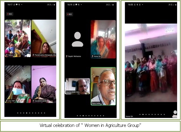 ICAR-Central Institute for Women in Agriculture (ICAR-CIWA), Bhubaneswar observed Women in Agriculture Day in Virtual mode on 4 December 2020. The chief guest of the program was Dr. S. K Srivastava, Director ICAR-CIWA. More than 100 women from 20 adopted villages under Mera Gaon Mera Gaurav villages participated in the program in virtual mode.