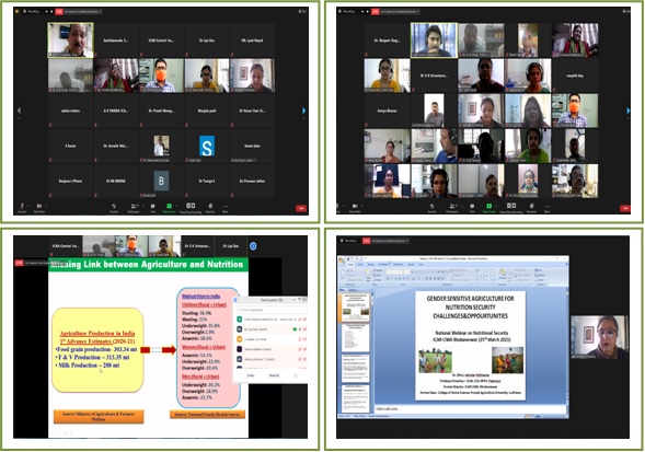 ICAR- CIWA organized National Webinar on “Nutritional Security: Challenges & Opportunities on Gender Sensitive Agriculture” on 25 March, 2021