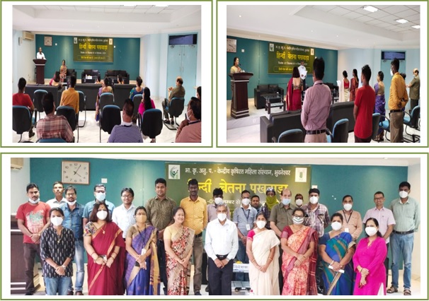 केन्द्रीय कृषिरत महिला संस्थान में कार्यरत सभी कर्मचारीयों को हिन्दी के प्रति जागरूकता और अपने दैनिक कार्य मे हिन्दी के व्यवहार को प्रोत्साहित करने के लक्ष्य से दिनांक 1 सितम्बर, 2021 से 14 सितम्बर, 2021 तक हिन्दी चेतना पखवाड़ा का आयोजन किया जाना है । इसका शुभारंभ संस्थान के निदेशक महोदय की अध्यक्षता में आयोजित किया गया| इस दौरान हिन्दी में किस तरह कार्य करेंगे तथा अपने कार्य में कैसे अधिक से अधिक हिन्दी को प्रोयग कर सकते है, इस बारे में अवगत कराया गया |