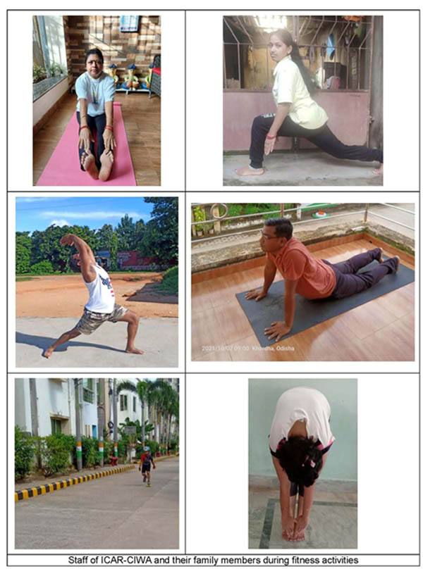 ICAR-CIWA also participated in the Fit India Freedom Run 2.0. The staff of ICAR-CIWA was introduced to the Freedom run and was made aware to the importance of the fitness in to their daily life. The staff was encouraged to include at least 30 minutes of walk, run yoga or exercise to the daily schedule. Thus following the mantra given by Honourable Prime Minister “Fitness ki dose adha ghanta roj”. The Staff of ICAR-CIWA participated in the campaign through virtual mode (keeping in mind the restrictions due to COVID-19 pandemic) by exercise, yoga, walk and run. ICAR-CIWA also promoted the event Trough its official website and other social media platforms. The family members and friends of the staff also encouraged and involved in the Fitness activities.