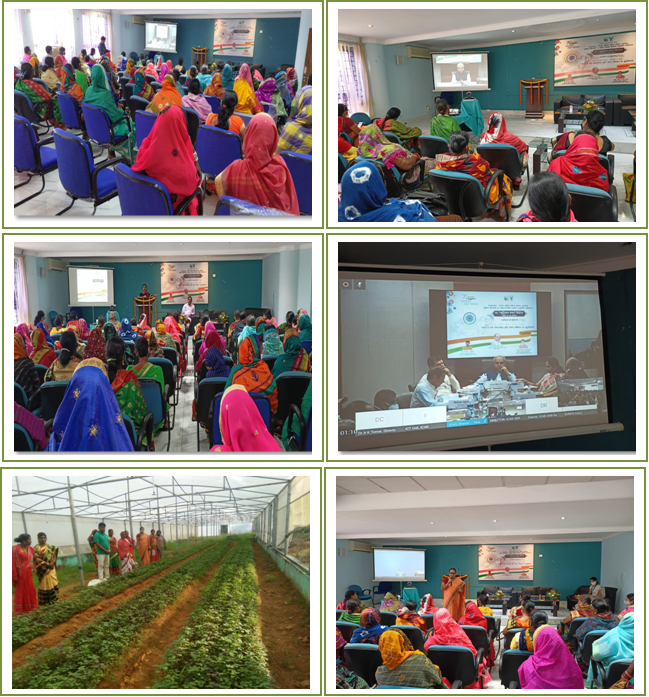 ICAR-Central Institute for Women in Agriculture, Bhubaneswar organized the launching of "Nutrition Smart Villages: An Innovative Model for Strengthening Poshan Abhiyan" by Hon’ble Minister of Agriculture & Farmers Welfare, Shri Narendra Singh Tomar through virtual mode on 10.11.2021 witnessed by 100 farm women representing 12 villages of 3 districts like Khordha, Puri, Cuttack of odisha. On this occasion a Capacity Building Programme on the theme "Nutri Sensitive Agriculture: Strengthening Poshan Abhiyan" was conducted for those 100 farm women in ICAR-CIWA Conference Hall on 10.11.2021 at 10:00 am. Simultaneously , the Programme was initiated in 75 villages across India through the network of AICRP on Women in Agriculture which is in operation at 13 centers in 12 States of India besides the coordinating institute located at Bhubaneswar.