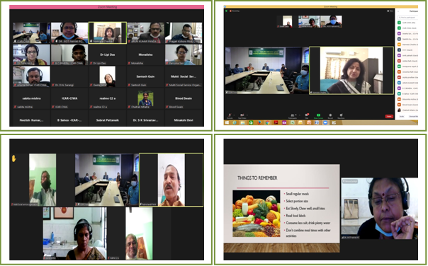 National Girl Child Day 2022” was celebrated at ICAR-Central Institute for Women in Agriculture, Bhubaneswar, Odisha by organizing a seminar on 24th January 2022 in virtual mode under Bharat Ki Azadi Ka Amrit Mahotsav. The seminar was attended by more than 100 farm women from 20 villages adopted under Mera Gaon Mera Gaurav programme of ICAR-CIWA, students (boys and girls) of class V. VI and VII of Sri Aurobindo Institute of Integral Education, Matru Vihar, Khandagiri, Bhubaneswar and staff of ICAR-CIWA. In the inaugural function of the seminar, Dr. Laxmipriya Sahoo welcomed all the dignitaries and participants. Chief Guest of the function, Dr. Anil Kumar, Director, ICAR-CIWA in his address highlighted the status of girls and women in the society in the past and their status at present times. He informed the audience about the government schemes and programmes meant for upliftment of girl child. He also shared the efforts made by ICAR-CIWA in gender mainstreaming. The guest of honour Dr. (Mrs) Namrata Chadha is well known for the cause of working on women and child in Odisha. She explained the participants on the significance of celebrating this day. She also stressed on the need for sensitizing boys and creating a congenial atmosphere both at home and society for growth of girl child to their full potential. The guest of honour Sri Rabindra Nath Padhi, Principal, Sri Aurobindo Institute of Integral Education, sensitised the participants about the rights of girl child and importance of their integral education. Dr. Arpita Mohapatra, proposed the vote of thanks. In the technical session, Dr. Namrata Chadha enlightened the participants about the need of combined community efforts to bridge gender barriers existing in society to empower girls and women. Dr. Jyoti Nayak, Principal Scientist, ICAR-CIWA highlighted the different ways to address the physiological and nutritional needs of adolescent girls. The programme was coordinated by Dr. Laxmipriya Sahoo, Dr. Arpita Mohapatra, Sri Nitish Kumar Er. Subrat Das and Sri Manoranjan Prusty.