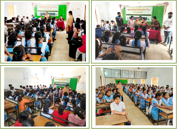 Agricultural Education Day was celebrated by ICAR-Central Institute for Women in Agriculture, Bhubaneswar on 3rd December 2022 by involving students of Government Nodal High School, CRP, Baramunda, Bhubaneswar. The celebration was organized to commemorate the birth Anniversary of Dr Rajendra Prasad, the first President of independent India to inculcate the importance of this profession in sustaining the society. Dr Sabita Mishra, Director (I/c), ICAR-CIWA was the Chief Guest of the programme and Smt. Kalpana Muduli, Headmistress, Government Nodal High School, CRP, Baramunda, Bhubaneswar was the Guest of Honour. Dr Tanuja S, Senior Scientist &Nodal Officer of the programme welcomed the guests, other dignitaries, staff and students to the function. Dr Sabita Mishra highlighted the importance of the day and the contribution of Dr Rajendra Prasad to the Agricultural education system of India. She also stressed upon the importance of agriculture to the economy of the nation and need for promoting agricultural education among students as well as farmers for agricultural prosperity of the country. During the programme an awareness talk on the importance of nutri-garden in tackling malnutrition was delivered by DrJyotiNayak, Principal Scientist, ICAR-CIWA. She urged the students to abstain from intake of junk food and stressed upon the importance of balanced diet in maintaining a healthy life. Dr. Tanuja S, Senior Scientist delivered a talk on the health benefits from consumption of fish. Leaflets on the nutritional importance of green leafy vegetables, milk, egg and fish were distributed among the students. Smt.Kalpana Muduli, Headmistress, Government Nodal High School, CRP, Baramunda, Bhubaneswar was presented with vegetable seed kits by Director (I/c), ICAR-CIWA to initiate the establishment of nutri-garden in the school premises. About 150 students participated in the programme. The programme was co-ordinated by Dr. Tanuja S, Senior Scientist and Shri. Atul C. Hemrom, Senior Technical Assistant, ICAR-CIWA.
