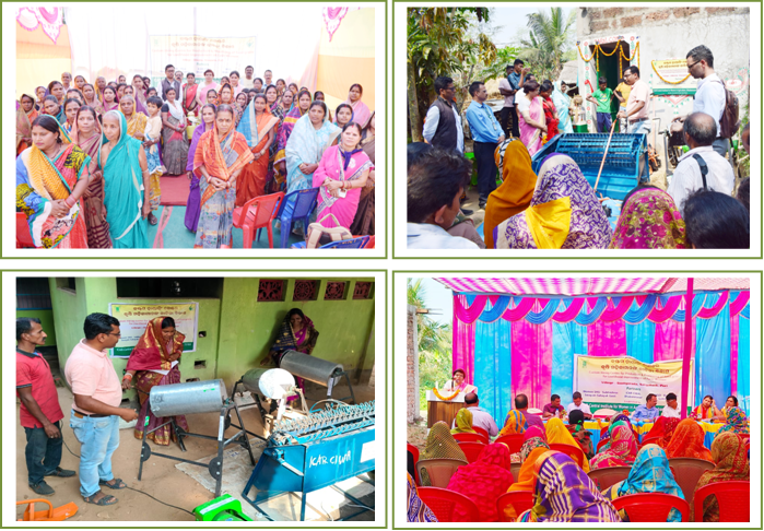 To enhance the efficiency of field operations, women SHG-led Custom Hiring Centres (2 nos.) were launched by ICAR- Central Institute for women in Agriculture, Bhubaneswar under SCSP on 10th February 2023. Two Scheduled Caste women farmers' based SHG named Maa Mangla Sanchya Samit, Olikona, Nimapada and Subhashree Swayam Sahayak Gosti, Gualigorada, Satyabadi in Puri district of Odisha were the key stakeholders. The major tools and equipment given were seed treatment drum, drum seeder, cono weeder, paddy thresher cum winnower, ground nut decorticator and maize sheller. The programme was attended by a total of 150 farm women at two locations.