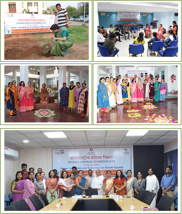 International Women’s Day- 2023 was celebrated at ICAR- Central Institute for Women in Agriculture, Bhubaneswar, Odisha by organizing different programmes for one week i.e. from 1st March to 8th March 2023 on the theme “DigitALL: Innovation and technology for gender equality”. On Day 1, Plantation Programme was organized in ICAR-CIWA farm. Day 2 witnessed a spectacular Group Discussion on the theme “Gender balance is not solely a women's issue, but also an economic issue” wherein seven Principal Scientists of the Institute were in the Discussion panel. A colourful Rangoli Festival was the major attraction of the celebration in which both colours and flowers were used for rangoli making. Besides this, creative writings like poems, slogans, quotes etc was also arranged. On 7th of March 2023, the final celebration of International Women’s Day was held. During this programme Dr Anil Kumar, I/C Director, ICAR-CIWA highlighted the importance of the women in the society and their issues. He informed the audience about the endeavors of ICAR-CIWA in empowering women in agriculture. A motivational talk was delivered by Brahma Kumari Durgesh Nandini and her team. She held a session on meditation for maintaining mental health.