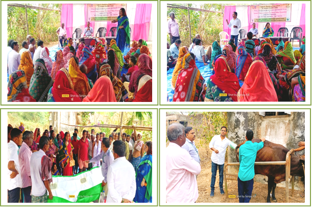 A Skill-based capacity building programme on the development of women entrepreneurship in Livestock and fisheries sector for promoting gender equity and strengthening livelihood and POSHAN Abhiyan through Nutri Smart Village programme was organized at Sribantapur, Jagatsinghpur on 15th March 2023. At the outset Dr Biswanath Sahoo, Pr. Scientist welcomed the participants from nearby villages and briefed the objectivities and activities of of the programme. Dr Lipi Das, Pr. Scientist imparted skill based capacity building on POSHAN Abhiyan to develop Nutri Smart Village programme. She emphasized the role of women farmers in developing homestead nutri garden, importance of nutrition for farm women for maintaining a healthy life and the responsibilities of women SHGs in achieving the family community nutrition. Dr Sahoo also detailed the process of establishment of women entrepreneurship through dairy, goatery and poultry and various ongoing schemes in Animal husbandry sector. Dr Suvendu Kumar Sethi, Block veterinary officer, Naugaon addressed the participants on various diseases, preventive and ameliorative measures to be undertaken in livestock for the benefit of the farming community. The farmers were advised to ensure vaccination of livestock against viral diseases. At the end, animal health camp was organised in which medicines were distributed given to about 200 goats, 20 cows and calves for worm infestation, ticks and mites infestation, low milk yield, wounds, digestive disorder and infertility problem etc. The process of vermicomposting was demonstrated by Sh. Sanjay Kumar Behera, Sr. Technical Assistant. Eighty six participants actively participated in the programme. Small tools under SCSP programme were also distributed to SC beneficiaries. The programme was concluded by Sh. K.C. Swain, Technical officer, OMFED.