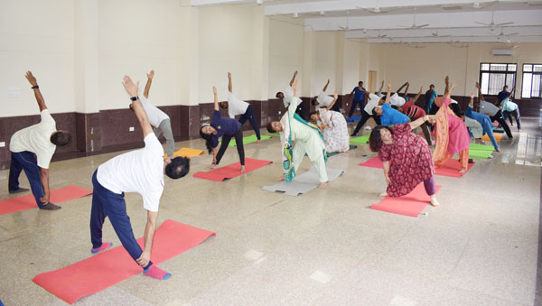 Yoga” has been derived from Sanskrit that means to join or to unite, symbolising the union of body and mind. Yoga is an invaluable ancient Indian practice with numerous benefits to both physical and mental health. It not only unites our body, mind and soul but it is a panacea that prevents and cures ailments, maintains our health, establishes peace, harmony and unity in diversity. ICAR-Central Institute for Women in Agriculture (ICAR-CIWA) Bhubaneswar celebrated International Day of Yoga on 21st June 2023 with the theme “Yoga for Vasudhaiva Kutumbakam” which represents our shared desire for “One Earth, One Family, One Future". The goal of International Yoga Day 2023 is to increase awareness of yoga’s all-encompassing approach to wellness. The programme began with welcome address by Dr. A. K. Panda, Nodal IDY. Dr. Mridula Devi, Director, ICAR-CIWA in her speech highlighted the importance of finding balance in today's fast-paced, modern lives and encourages physical, mental, and spiritual harmony. Yoga fosters mindfulness, stress reduction, and overall health and vitality. She advises the staff to practice yoga everyday to reduce stress, keep good health and increase work efficiency. Various Yoga Asanas and Pranayamas were performed by staff as per common yoga protocol under the guidance of Yogacharya Shri.Dinanbandhu Sadangi, Bhubaneswar. All the Scientific, Technical and Administrative staff of ICAR-CIWA were enthusiastically participated in the program. The Expert also answered various queries raised by the staff on the benefits of specific Asanas & Pranayams on physical as well as mental health. The programme was coordinated by Dr. A. K. Panda, Principal Scientist and Nodal IDY of the institute.