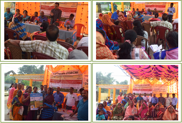 ICAR-Central Institute for Women in Agriculture, Bhubaneswar organized a Training cum Demonstration Programme on “Strengthening Livelihood of Women farmers through Small Scale Livestock & Poultry Production” on 29 December 2023 at Handiapada village of Nimapara block, Puri district of Odisha under SCSP programme. The importance of Livestock and poultry farming for strengthening the livelihood of women farmers was discussed during the training. The farm women were advised to follow scientific management practices for higher income through livestock production. The importance of green fodder in dairy production was also discussed and all the farm women were advised to grow green fodder for not only higher milk production but also reduction in cost of production. Formulating low cost feed using locally available feed ingredients was discussed in the meeting. The diseases of economic importance of cow and preventive measures through timely vaccination and deworming was also discussed. While going for small scale poultry production, selection of appropriate chicken varieties, proper housing, supplementary feeding, timely vaccination and day to day care, which are highly crucial for making it a successful enterprise was also discussed. The method of growing Azolla in the backyard was deliberated and farm women were suggested to feed freshly harvested azolla. Various equipments and their uses were demonstrated to the farm women during the training. About 40 farm women participated in the programme. At the end of the programme milk cans, steel buckets, metal bins, improved sickles and battery sprayers were distributed to the SC farm women beneficiaries under the SCSP Programme. The programme was coordinated by Dr. A. K. Panda, Head (GF&CS) and assisted by Mr. B. C. Behera, Technical Officer of the institute.