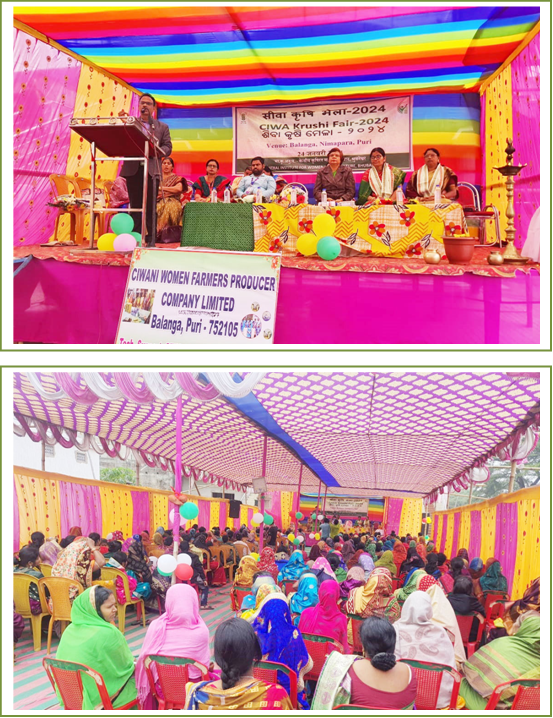 In the Krushi fair,14 exhibition stalls and more than 400 women farmers participated in the event and displayed their products produced by the SHGs under CIWANI Women Farmers Producer Company. A Custom Hiring Centre (CHC) was also established for income generation by SC farm women in Mandiakud village of Nimapara block.
