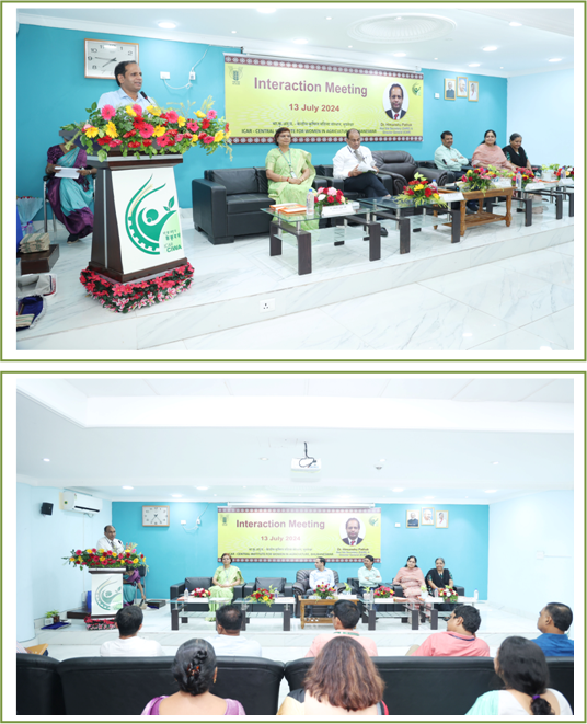 | Hon’ble DDG (Agril. Edn.), emphasized on research on enhancing the efficiency and effectiveness of women in Agriculture highlighting the output of the institute at the national and global level and formulating the programme of national priority. He suggested to organize special training for women scientists of ICAR and SAUs, Global Conference in partnership with CGIAR institutes. He appreciated the works undertaken by ICAR-CIWA through Nutri-smart village programme and suggested to make a model village through Poshan Abhiyan Programme for improving the livelihood and nutritional security of women farmers in the vicinity of village community. Hon’ble DDG (Fisheries) highlighted on strengthening the collaboration of ICAR-CIWA with other ICAR institutes and suggested to work on Ornamental fisheries and aquarium, an unique area of importance for women farmers. Hon’ble ADG (EP&HS) emphasized upon uniqueness of the institute and research and extension activities undertaken by the institute for upliftment of the women farming community. She emphasized to enhance the research publications in journals of high impact factor. |