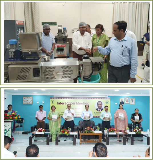 | At the outset, Dr. Mridula Devi, Director, ICAR-CIWA welcomed the dignitaries and highlighted the achievements of the institute in various aspects of women empowerment. The Hon'ble DG, DDGs, and ADG, along with directors of the various institutes of ICAR visited the Women Empowerment Museum/Technology Hub, extrusion processing facility and appreciated the progress of work. An interaction meeting with all staff of ICAR-CIWA and members of women led FPCs was organized under the chairmanship of Hon’ble Secretary DARE and Director General, ICAR. |