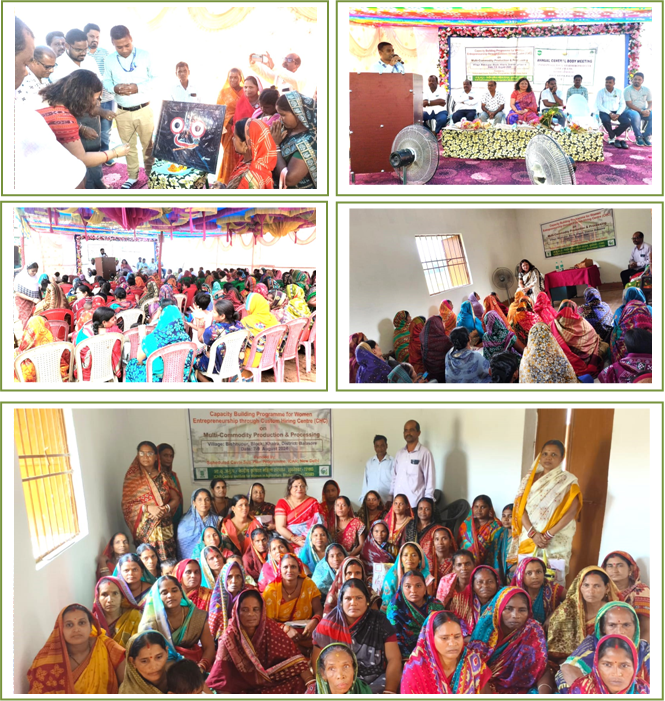 | The ICAR-Central Institute for Women in Agriculture, Bhubaneswar organized a three-day Capacity Building Programme on Women Entrepreneurship through Custom Hiring Centre during 7-9 August 2024 at Antara/Bishnupur of Khaira Block of Balasore District under Scheduled Caste Sub Plan Programme. The training was aimed at motivating, mobilizing and development of women farmers to become successful entrepreneurs through Custom Hiring Centre. The training program was a foundation program to make the women aware of the concept of CHCs and how to manage it to reap potential benefits through the use of the tools and machineries in the Centre. Various sessions were planned to transfer maximum information to the beneficiaries participating in the training in the span of three days. On 7th the Inaugural Function of the program was organized in convergence with Nigam NGO, Anandmayee WFPO, Gramadebati SHG and other Line Departments. The inaugural session was also graced with the presence of the BDO, Khaira with other Officials from NABARD, ATMA and Co-operative Bank who will also be playing important role providing financial support in the growth of the CHC to be established in the area. More than 250 women farmers were present on the inaugural of the training from target village and adjacent villages. After the inaugural session, a need assessment of the participants was done to understand the current socio-economic status, perception, willingness and knowledge level of the women farmers. Information on the demographic profile, major and minor crops produced, production, processing and marketing of the produce was also done during the second session. The training covered a range of topics viz., Role of Financial Organizations in implementation and execution of Women-led CHCs; innovative entrepreneurial approaches and group dynamics for promoting gender equity through CHCs; women entrepreneurship through farm mechanization by using various farm tools and implements; benefits and operation of CHCs; role of WSHGs and WFPOs in effective implementation of CHCs. The CHCs will provide a strong platform and enrich the knowledge and skill of the women farmers to take up various production and processing activities. The women involved in various agro-based activities under the CHCs will be able to attain economic stability, acquired skill set for operating the machineries leading them to be Self-reliant (Atmanirbhar) and Self-sufficient. The programme was co-ordinated by Dr. Lipi Das, Principal Scientist, ICAR-CIWA and technical assistance was provided by Shri Atul Chetan Hemrom, Senior Technical Assistant, ICAR-CIWA. |