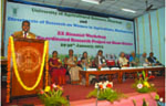 | Dr. R.R. Hanchinal, Vice Chancellor, UAS Dharwad, in his presidential address said that AICRP Home Science has to play important role in building the capacity of the farm women for the effective management of agricultural activities. Dr. Krishna Srinath, Director, DRWA & Project Coordinator AICRP highlighted the AICRP activities and achievements. She also laid out the future plan of the AICRP. The workshop was also graced by the QRT experts namely Dr. Ratna Tewari, Dr. Vandana Dwivedi, Dr. Mahtab Sohrab Bamji, and Dr. V.P. Chahal. The Workshop was attended by eighty Home Scientists from 9 AICRP centres and scientists of the DRWA. An exhibition on technological interventions of home sciences was also arranged. Dr. Shobha Nagnur, Organizing Secretary, College of Rural Home Science, UAS Dharwad proposed the vote of thanks. | |