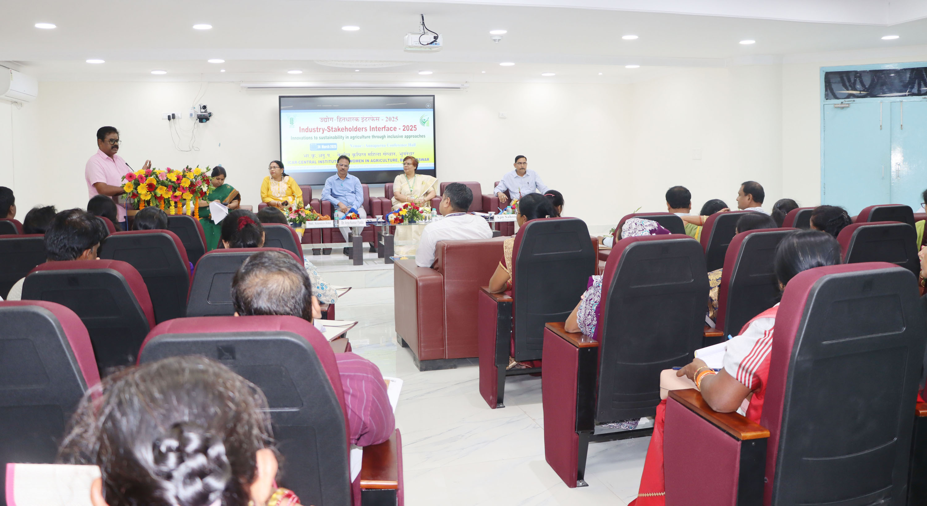 | ICAR-CIWA has been striving for gender mainstreaming and women empowerment in agriculture to realize enhanced productivity and sustainability of agriculture. ICAR- Central Institute for Women in Agriculture had organised Industry-Stakeholders Interface-2025 on 24th of March 2025 to provide a provide a unified platform aimed at advancing women-friendly technologies and fostering agri-entrepreneurship among farm women and industry stakeholders. The theme of the interface was ‘Innovations to sustainability in agriculture through inclusive approaches’. The primary objective of the meeting was to foster Public-Private Partnerships and create a platform for highlighting women-friendly technologies to industry leaders and technology partners. Additionally, it aimed to gather feedback from entrepreneurs to steer research in a focused direction, ensuring positive and impactful outcomes. There were 75 numbers of Industry personnel, Women FPO leaders, Entrepreneurs from different districts of Odisha attended the meeting. |