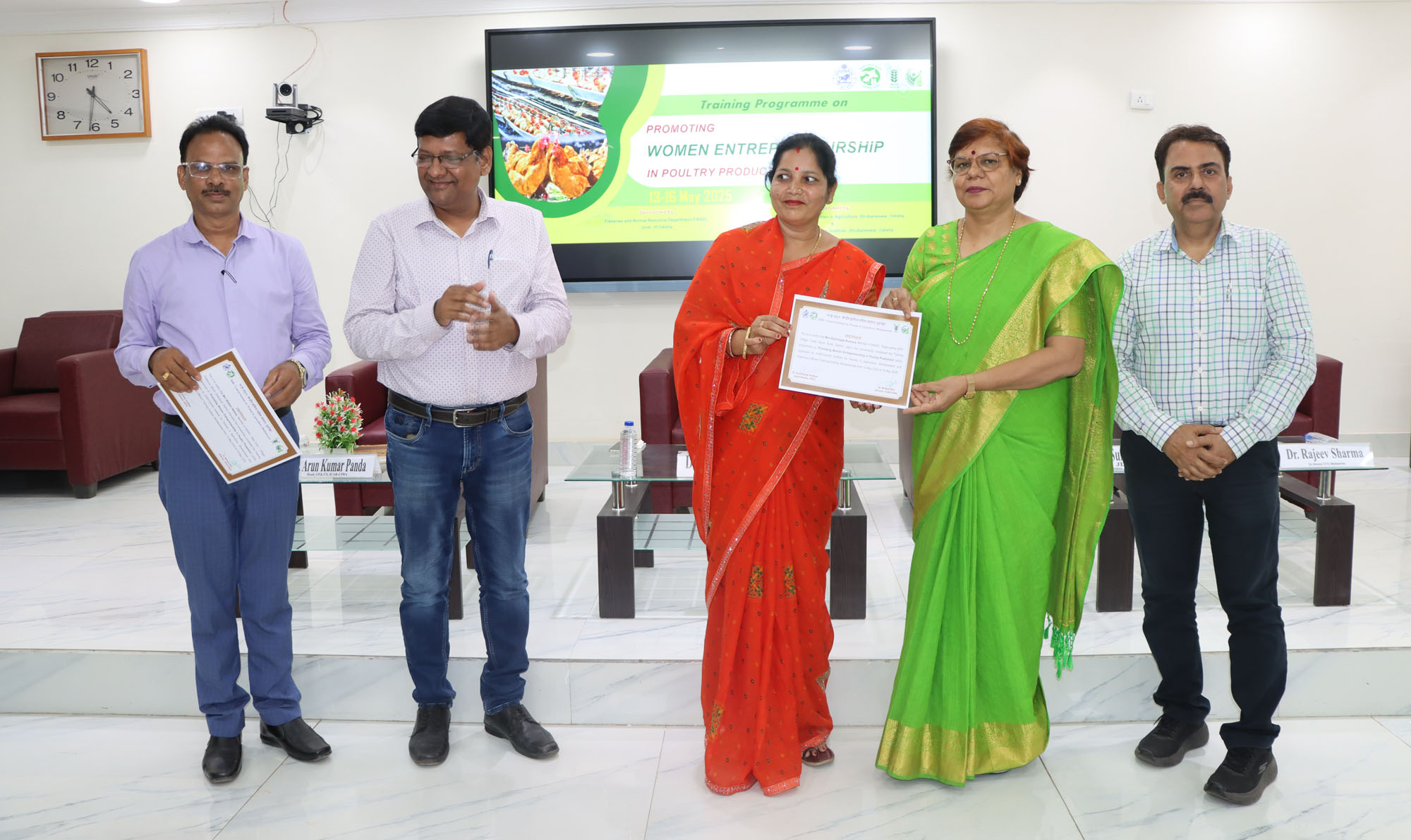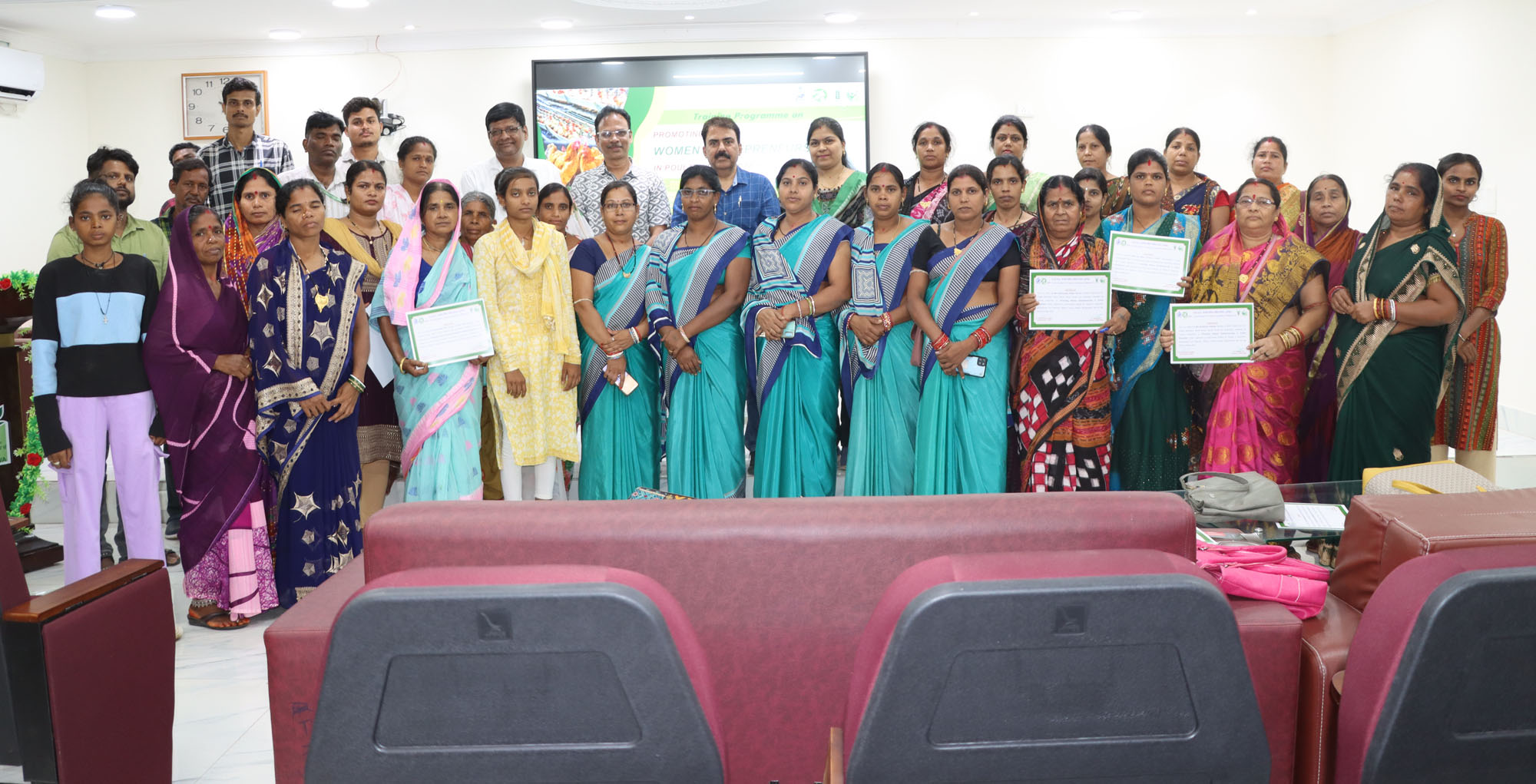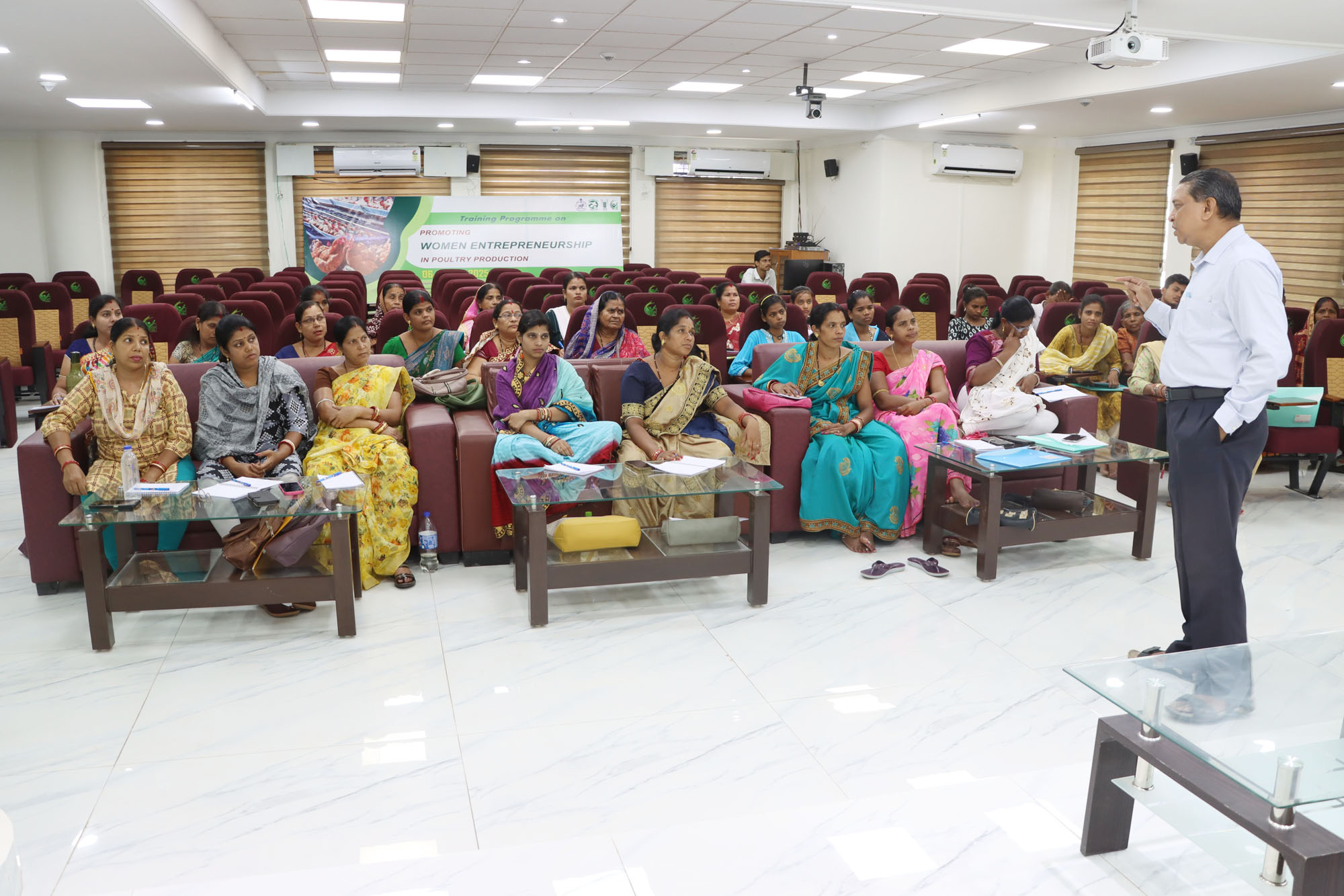 | Poultry production is a dynamic and growing sector with immense potential for income generation, nutritional security, and employment, especially for women in rural areas. With minimal land requirements, quick returns, and easy scalability, poultry farming offers an ideal entry point for women to participate actively in agriculture and allied sectors. ICAR-Central Institute for Women in Agriculture (ICAR-CIWA), Bhubaneswar, in collaboration with the Veterinary Officers' Training Institute (VOTI) and the Fisheries & Animal Resources Development (FARD) Department, Government of Odisha, organized three training programmes of four days duration each on “Promoting Women Entrepreneurship in Poultry Production” from 6th May 2025 to 13th June 2025. This programme was designed to enhance the skills and knowledge of women entrepreneurs in key areas of poultry production, with a focus on poultry housing and management, disease prevention, feeding practices, entrepreneurship development, and effective marketing strategies. The women entrepreneurs were also informed about the ongoing poultry development schemes of the Animal Resources Development Department, Government of Odisha, to help them leverage available benefits. As part of the training, exposure visits were also made to the institute’s poultry demonstration unit, the Environmentally Controlled Poultry Farm, and the Central Poultry Development Organization in Bhubaneswar. These visits aimed to showcase technological advancements and provide hands-on experience and practical insights into various aspects of poultry farming. Dr. Mridula Devi, Director, ICAR-CIWA, urged the participants to dream big and take confident steps towards becoming successful poultry entrepreneurs. She further stated that the institute is committed to supporting women in agriculture through capacity building, technology transfer, and policy advocacy. This training programme is a part of that commitment, and objective is to equip the women farmers not only with technical know-how but also with the confidence and entrepreneurial mindset required to manage and scale poultry ventures successfully. Dr. Arun Kumar Panda, HOD and Course Coordinator appreciated the participants for their enthusiastic involvement and hope this initiative sparks successful poultry ventures that uplift livelihoods and inspire rural women toward economic self-reliance. A total of 90 women entrepreneurs from various Self Help Groups (SHG) from 8 districts of Odisha participated in the training programme. |