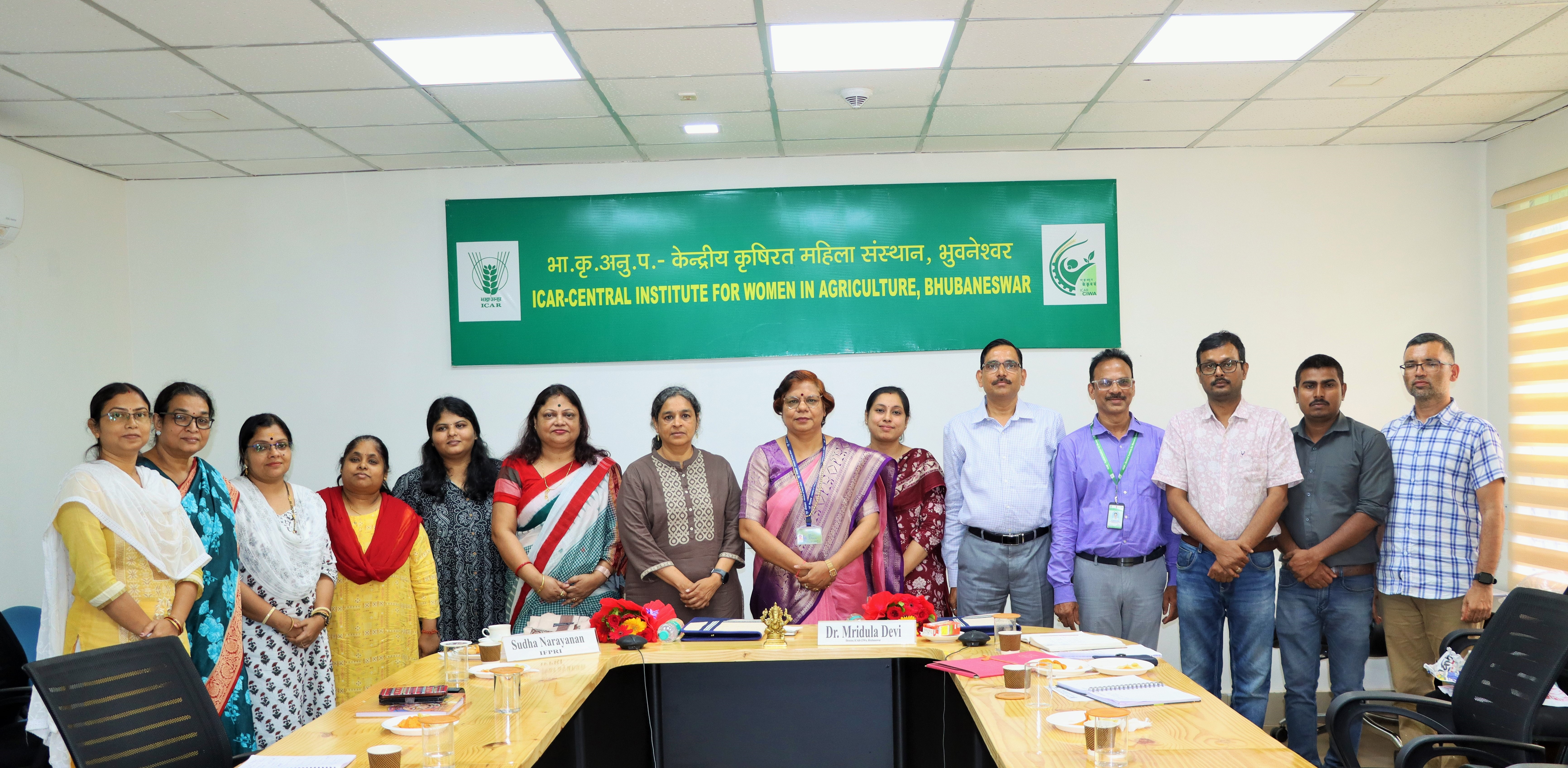 | The ICAR-Central Institute for Women in Agriculture (ICAR-CIWA), Bhubaneswar, organized a workshop on “Methodologies for Gender Responsive Research in Agriculture and Extension” on 25th September 2025. The workshop aimed to sensitize and equip scientists with appropriate tools and approaches to effectively integrate gender perspectives in agricultural research and extension programs. Dr. Mridula Devi, Director, ICAR-CIWA, emphasized the significance of gender-responsive research in achieving inclusive agricultural growth. She highlighted the institute’s commitment to strengthening capacities of scientists in integrating gender perspectives, ensuring equitable benefits, and fostering sustainable livelihoods through innovative, participatory, and evidence-based research and extension methodologies. Dr. Arun Kumar Panda, HOD (GF&CS) made a brief presentation on “Indicators for Gender Responsive Research in Agriculture” during the workshop. He highlighted the relevance of gender-sensitive indicators in assessing access, participation, decision-making, and benefits in agricultural interventions. Dr. Sudha Narayanan, Former RAC Member, ICAR-CIWA and Senior Research Fellow, International Food Policy Research Institute (IFPRI), CGIAR, New Delhi, delivered the lecture on "Methodologies for Gender Responsive Research in Agriculture and Extension". In her presentation, she highlighted the importance of gender-disaggregated data, participatory methodologies, and inclusive indicators to ensure that agricultural innovations benefit both men and women farmers equitably. She emphasized linking gender-responsive research with policy, institutional mechanisms, and grassroots realities to strengthen the impact of agricultural development programs. The lecture was followed by an interactive discussion, where CIWA scientists deliberated on integrating gender-responsive methodologies into their ongoing and upcoming research projects. The session provided a valuable platform for knowledge sharing and collaborative reflection. The workshop ended with vote of Thanks by Dr. S. K. Saranagi, HOD (ATW). |