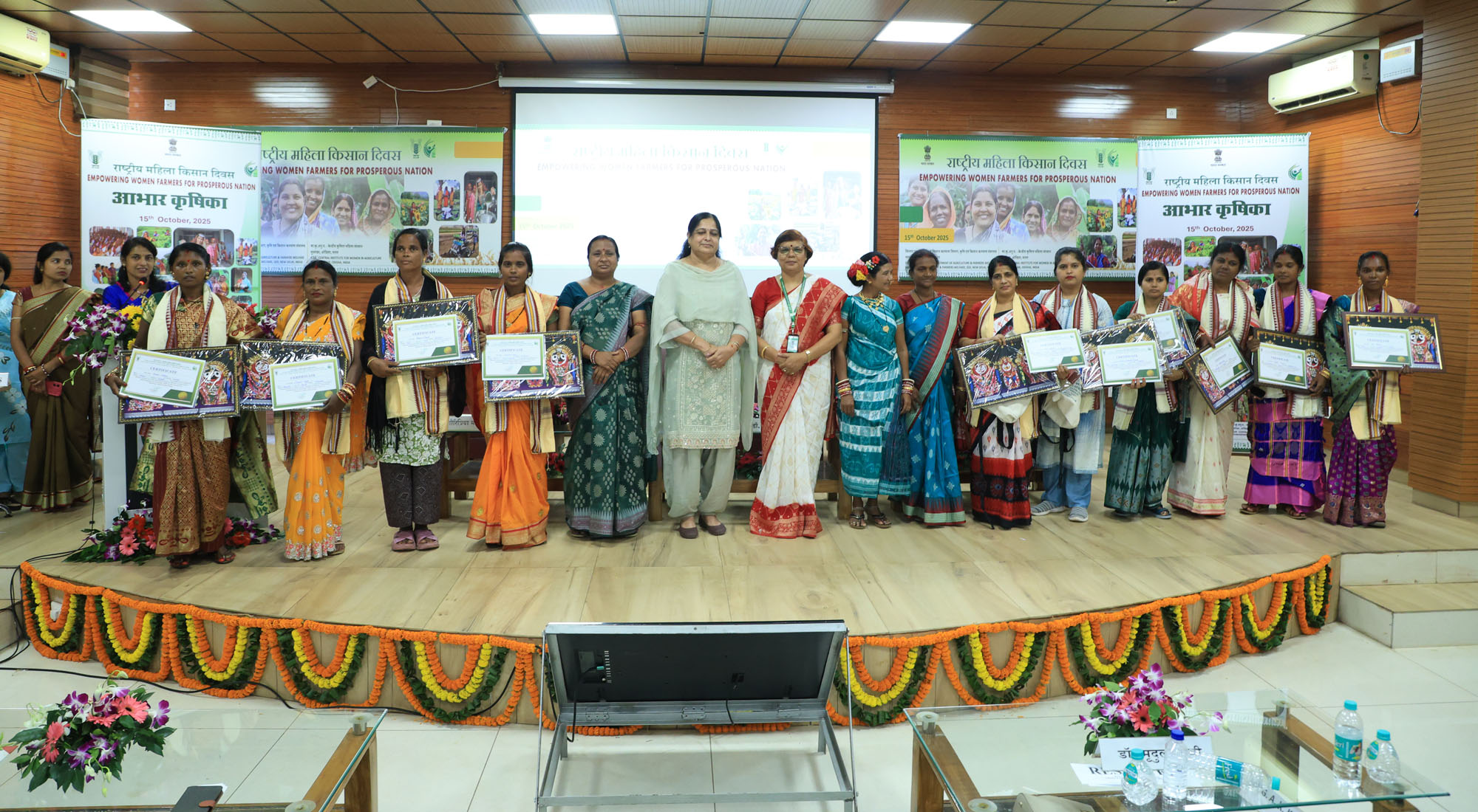 | ICAR-Central Institute for Women in Agriculture (ICAR-CIWA), Bhubaneswar in collaboration with Extension Division, Department of Agriculture and Farmers Welfare, Ministry of Agriculture and Farmers Welfare, Govt. of India celebrated "Rashtriya Mahila Kisan Diwas" with the theme "Empowering Women Farmers for Prosperous Nation" on 15th October 2025 with great enthusiasm to honour the vital contributions of women farmers in Indian agriculture. The event witnessed the gracious presence of Shri Shivraj Singh Chouhan, Hon’ble Union Minister of Agriculture and Farmers Welfare through virtual mode, who addressed the gathering and highlighted the pivotal role of women in ensuring national food and nutritional security. |