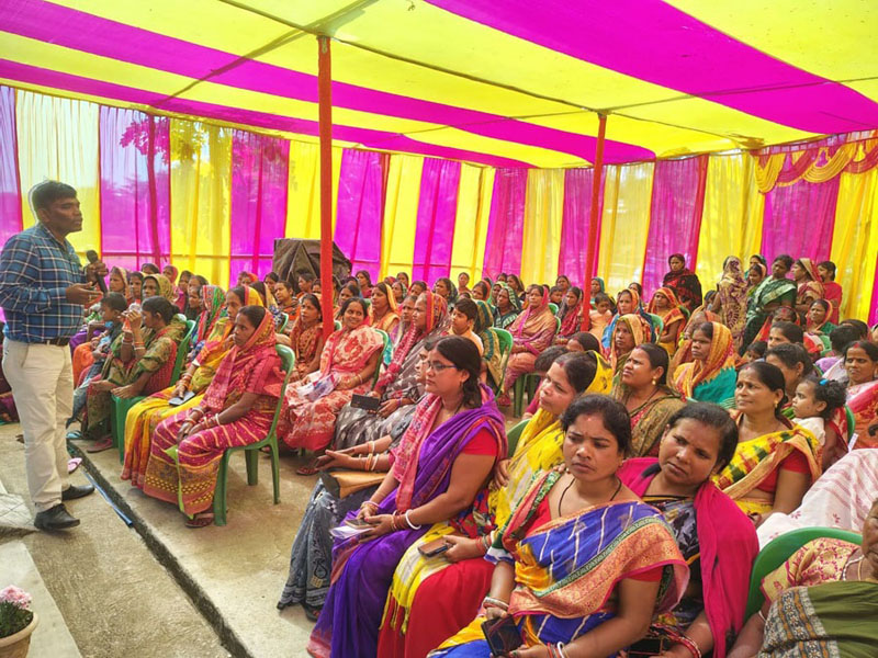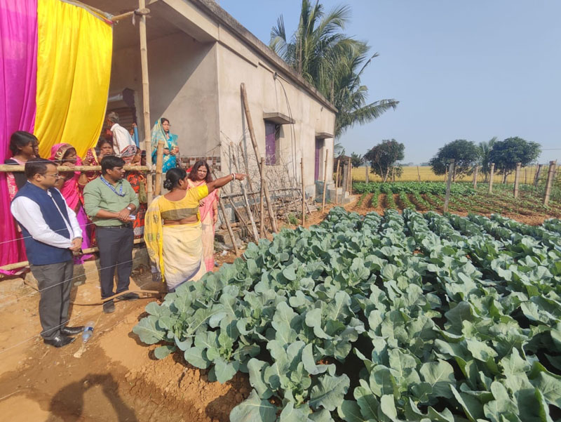 | A sensitization programme on various women-centric schemes of NABARD was discussed Mr Rajib Kumar, Lead District Manager and Mr Deepak Kumar Sahoo, District Development Manager, NABARD, Bhadrak. The programme was attended by Shri Ranjan Kumar Parida, Sarpanch; Panchayat Representative, Personnel from NGO, FPO, SHGs and other line departments and more than 200 women farmers. The programme was organized in coordination with Kalathakura Farmer Producer Company Ltd. with the leadership of Mrs. Mamata Samal, which is active in the region and has many Self-Help Groups under its wings thus creating opportunities for women to improve socially, technologically and economically through various agricultural activities. The vegetable seed kits were provided to women farmers by ICAR-CIWA to promote nutri-farming for better livelihood and family nutrition. Few progressive women farmers shared their issues and experiences in the field of agriculture and allied sectors. A field visit was also organized to showcase the high‑value vegetable crops being cultivated by the women farmers. |