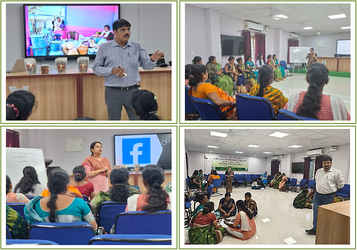 | Lectures were delivered by professors from renowned management Institutions like Xavier Institute of Management (XIM) and Kalinga Institute of Industrial Technology (KIT), Bhubaneswar as well as expert from professional society who have imparted effective knowledge/thought and shared their experience on successful women entrepreneurs across the rural India. Dr. Pradeep Mishra, Associate Professor, Rural Management, XIMB, delivered a lecture on markets identification, mapping of resources and business planning for entrepreneurship development, identification, assessment and mitigation of potential risks associated with product marketing. Dr. Mousumi Padhi, Associate Dean, HRM/Content development & promotion, XIMB elaborated on exploring promotional strategies for better marketability of products. Dr. Subhra Pattnaik, Associate Professor, HRM/E-commerce/ICT application explained how to improve customers’ engagement, work space management, cost-effective marketing and global expansion of food products through ICT approaches. Dr. M P Nayak, Professor, OUAT, Bhubaneswar in his lecture briefed on quality regulations & certification of Agri-produce & products, FSSAI regulations, food products order, equipment selections and sanitation, phytosanitary measures and urged trainees for complying to necessary guidelines for products development for a commercial start-up activity. |
