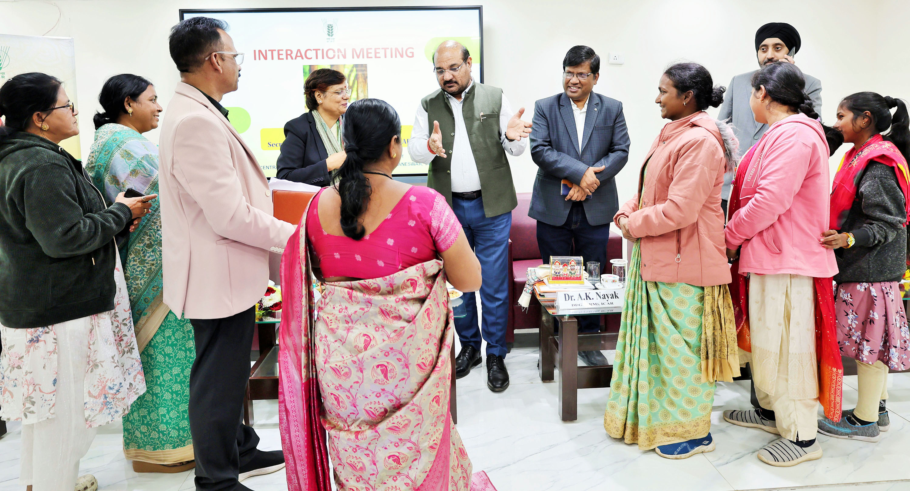 | Dr. M. L. Jat, Hon’ble Secretary, Department of Agricultural Research and Education (DARE), and Director General, Indian Council of Agricultural Research (ICAR), visited the ICAR-Central Institute for Women in Agriculture (ICAR-CIWA), Bhubaneswar, on 06 January 2026 and interacted with the scientists and staff of the Institute. Dr. A. K. Nayak, Deputy Director General (NRM); Sh. Pawan Jeet Singh, Director (DARE & CVO); Sh. Vampad Sharma, Director (Admin./Legal); Sh. Sushil Kumar Singh, Director (Personnel), and other Senior Officers of ICAR, New Delhi were also present during the interaction meeting. |